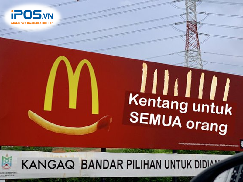 Ví dụ: Thương hiệu đã thực hiện biển quảng cáo “Lối đi lên đền Batu – ngôi đền bí ẩn nhất Malaysia” được mô phỏng lại từ những chiếc khoai tây chiên. Hay tháp gà miếng Mcnuggets mô phỏng Kim tự tháp Sunway – một trong những trung tâm thương mại lớn nhất ở Malaysia.