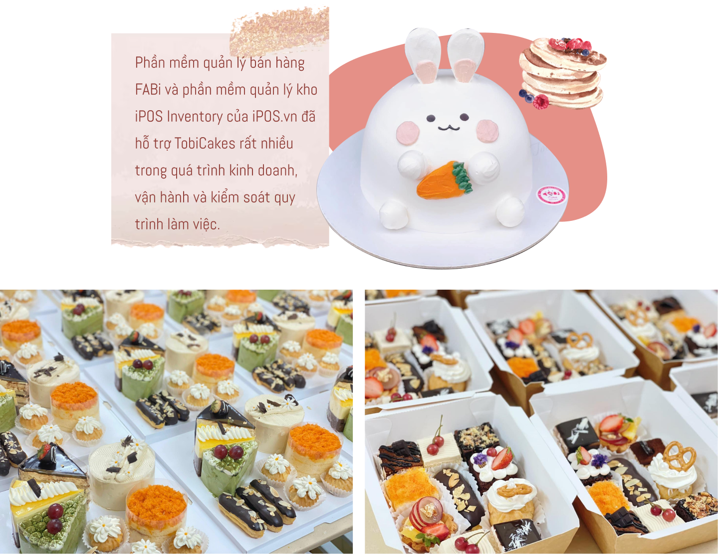 Về bên bán lẻ thì hiện tại TobiCakes đang sử dụng phần mềm quản lý bán hàng FABi và phần mềm quản lý kho thông minh iPOS Inventory của iPOS.vn. Chị thấy cả hai phần mềm đều hỗ trợ rất tốt cho nhân viên của tiệm trong việc kiểm soát doanh số và lợi nhuận hàng ngày; có nhiều báo cáo chi tiết về tình hình hàng hóa bán ra, số lượng các loại bánh bán chạy, tình hình tồn - xuất của nguyên vật liệu theo real-time,...