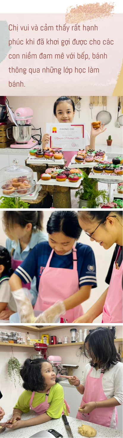Ngoài kinh doanh bánh ngọt, chị còn mở các lớp dạy làm bánh cho trẻ nhỏ. Dạy làm bánh cho con nít cần rất nhiều công sức và kiên nhẫn, không giống như dạy làm bánh cho người lớn. Vậy điều gì đã khiến chị nảy ra ý tưởng mở lớp dạy làm bánh cho trẻ nhỏ vậy ạ?
