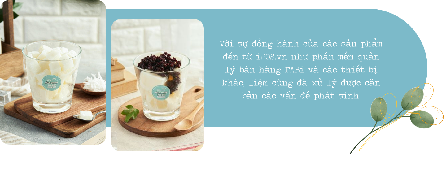 Với sự đồng hành của các sản phẩm đến từ iPOS.vn như phần mềm quản lý bán hàng FABi và các thiết bị khác, Tiệm cũng đã xử lý được căn bản các vấn đề phát sinh. Phần mềm giúp nhân viên của Tiệm có thể order và thanh toán cho khách một cách nhanh chóng, lại dễ sử dụng, không mất quá nhiều thời gian, đưa ra kết quả trực quan và báo cáo chi tiết nhất về tổng doanh thu, số lượng hàng hoá bán ra, lãi - lỗ, quản lý kho hoặc chi phí phát sinh,...