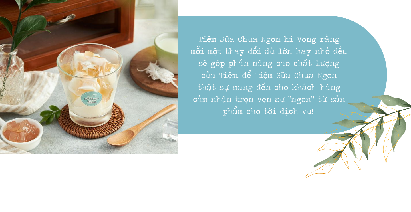 Tiệm Sữa Chua Ngon hi vọng rằng mỗi một thay đổi dù lớn hay nhỏ đều sẽ góp phần nâng cao chất lượng của Tiệm, để Tiệm Sữa Chua Ngon thật sự mang đến cho khách hàng cảm nhận trọn vẹn sự “ngon” từ sản phẩm cho tới dịch vụ!