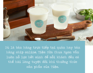 Nhiều người vẫn thường có định kiến rằng sản phẩm khi mua ship thì sẽ không thể ngon như khi ăn tại quán, thế nhưng với Tiệm Sữa Chua Ngon thì lại khác, chị muốn dù là ăn trực tiếp hay đặt ship thì sản phẩm mà khách chọn đều phải có chất lượng thật tốt. Sản phẩm chính mà Tiệm kinh doanh là sữa chua - một món ăn khá đặc thù và khó bảo quản nguyên vẹn ở điều kiện thông thường, khâu vận chuyển đóng gói khi ship hàng online rất quan trọng. Vì thế, Tiệm Sữa Chua Ngon đã phải thường xuyên tìm tòi và nghiên cứu sao cho cốc sữa chua tới tay khách hàng vẫn đảm bảo tươi ngon tròn vị.