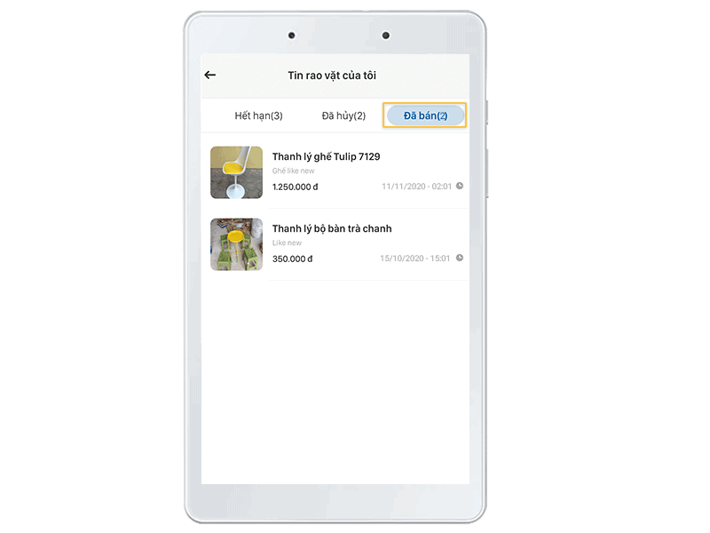 Đã bán: Trạng thái tin rao vặt đã bán thành công.