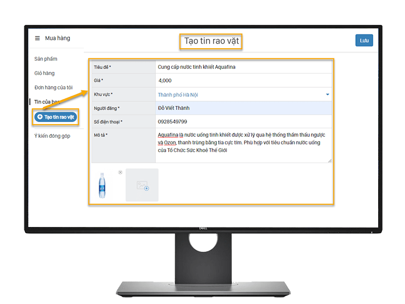 Bước 2: Tạo thông tin rao vặt– Để tạo mới tin rao vặt > Chọn Tạo tin rao vặt.– Khai báo các thông tin như: Tiêu đề, giá bán, khu vực, mô tả sản phẩm, thông tin người đăng.- Sau đó, chọn Lưu và đồng thời hiển thị trạng thái Chờ duyệt.– Sau quá trình kiểm duyệt, tin rao vặt sẽ hiển thị trạng thái Đã duyệt hoặc Đã hủy.