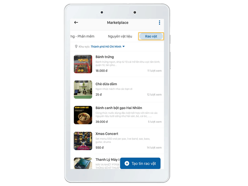 Tại giao diện Marketplace, chọn mục Tin rao vặt