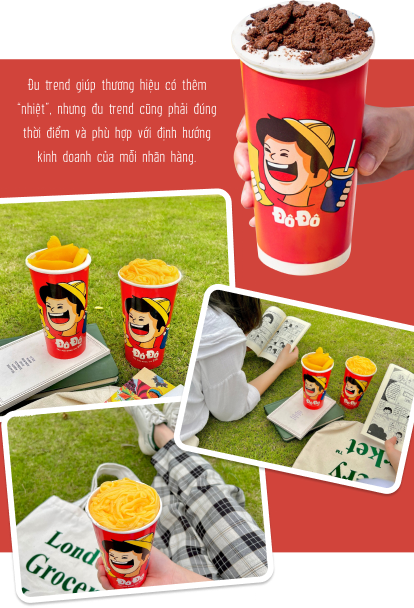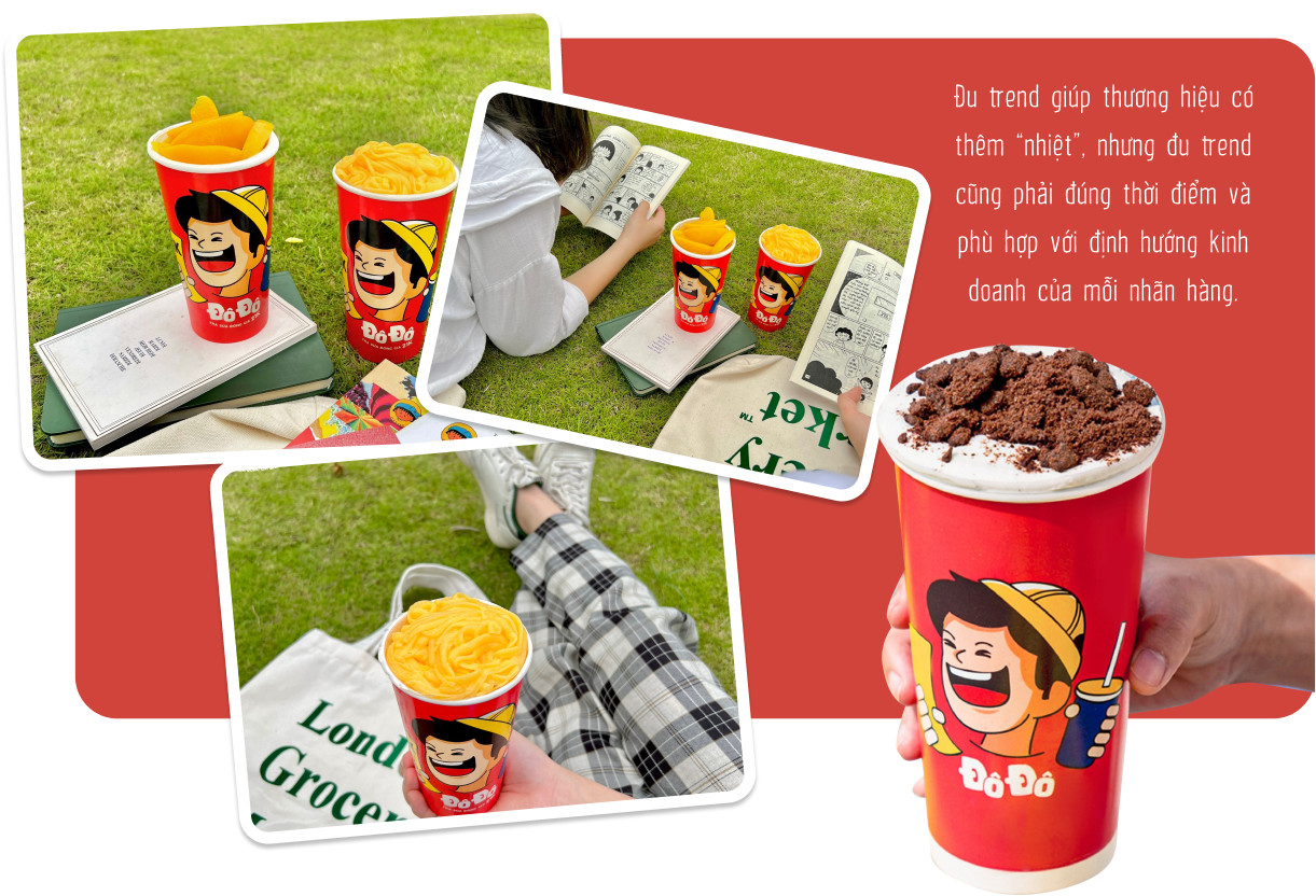 Tuy nhiên, mỗi brand lại có một định hướng riêng và giá trị cốt lõi xuyên suốt, vậy nên trước khi đu trend chúng ta phải cân nhắc xem đu trend có phù hợp với định hướng thương hiệu không, có đúng với phong cách kinh doanh từ trước tới giờ hay không. Ví dụ như một thương hiệu chuyên làm các dòng trà thì thử sức với trà mãng cầu là một lựa chọn khá “matching”, nhưng giờ lại thử một món lạ như cà phê muối hay gộp cả gỏi gà măng cụt vào thì đúng là rất “lạc quẻ”. Hãy coi trend chỉ như một gia vị mới được thêm vào list những món quen thuộc của thương hiệu mà thôi, đừng để nó ảnh hưởng quá nhiều tới định hướng của mình.