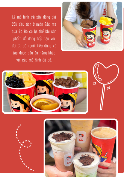 Hiểu được điều này và cũng để khách hàng dễ lựa chọn, Đô Đô đưa tất cả các sản phẩm về cùng một mức giá và khá là thấp - chỉ 25.000 đồng cho 1 cốc trà sữa bất kể loại nào. Mô hình đồng giá giá rẻ như vậy không chỉ giúp khách hàng có thể dễ dàng tiếp cận với sản phẩm mà còn tạo ra dấu ấn riêng cho Đô Đô trên thị trường khi đó.