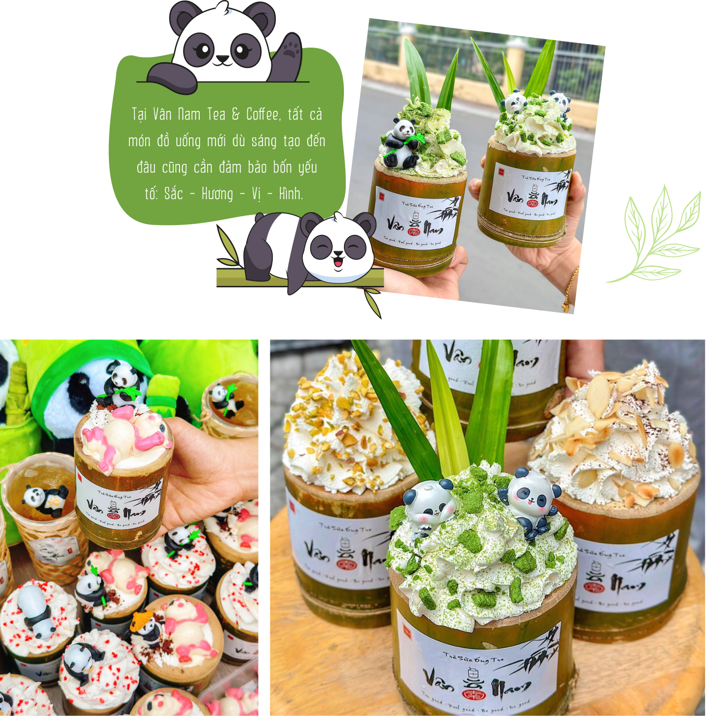 Trà sữa các vị khác nhau được đựng trong ly làm từ ống tre thật 100%, phủ lên trên một lớp kem trắng bồng bềnh, thêm một chú Thạch Gấu Panda Pink núng nính, dễ thương vừa đem đến trải nghiệm đồ uống thú vị, vừa tạo được những bức hình check-in độc lạ. Đặc biệt, ly ống tre mà Vân Nam sử dụng là sản phẩm thủ công do chính người nông dân Việt Nam làm ra. Mức độ tiêu thụ càng nhiều thì càng giúp các cô, các bác nông dân có thêm nguồn thu nhập trong thời gian kinh tế khó khăn. Đó cũng là giá trị mà Vân Nam muốn lan tỏa.