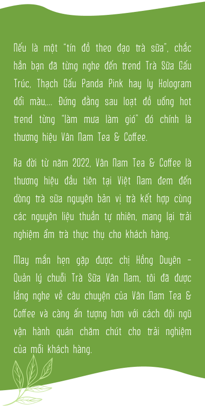 Cảm ơn chị Hồng Duyên - Quản lý chuỗi Vân Nam Tea & Coffee vì những chia sẻ chân thành trên. Chúc Vân Nam sẽ ngày càng thành công với những dự định sắp tới!