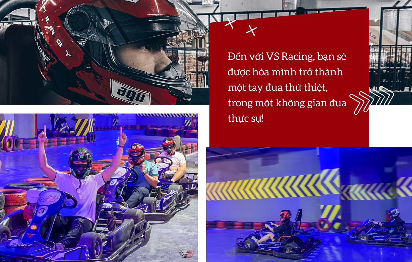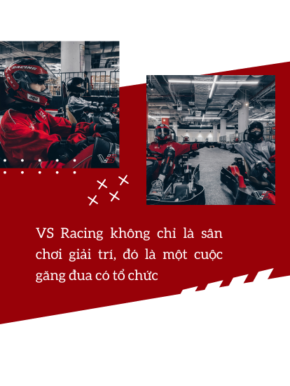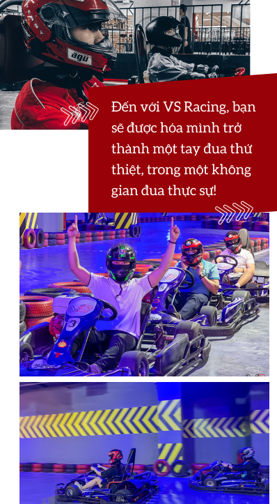 VS Racing thì khác biệt hơn! Từ không gian trường đua, âm thanh, thiết bị,... dựng lên đều là thật để khách hàng có trải nghiệm “đã” nhất. Chúng mình xây dựng đường đua, khúc cua, xe đua, hiệu lệnh,... tương tự như một cuộc đua “ná thở” đầy kịch tính. VS Racing cũng không chỉ là một sân chơi giải trí thông thường. Đây còn là nơi “ươm mầm” và “xuất khẩu” các tay đua sang qua thị trường quốc tế. Chúng mình tập trung cả mảng đào tạo, phát triển kỹ năng chuyên nghiệp và bài bản không kém gì mô hình phương Tây và các nước phát triển châu Á.