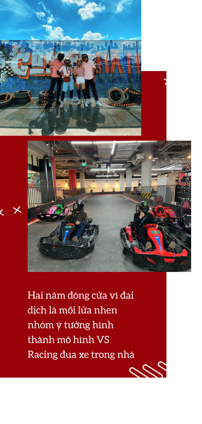Thời gian đầu mình tập trung phát triển thương hiệu Go Kart Hà Nội - mô hình đua xe ngoài trời đầu tiên tại Hà Nội. Mãi đến tháng 11 năm ngoái, VS Racing mới ra đời và trở thành mô hình đua Go Kart trong nhà đầu tiên tại Đông Nam Á. Rất may mắn là sản phẩm mới lạ này được đông đảo các bạn trẻ ủng hộ nhiệt tình.