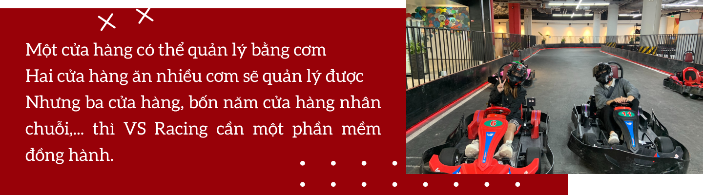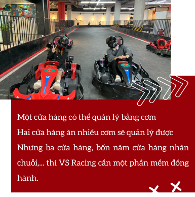Việc nhân chuỗi để phủ thương hiệu là điều mà mọi doanh nghiệp đều muốn làm, nhất là với mô hình kinh doanh giải trí như bọn mình. VS Racing có thể là “luồng gió mới” với giới trẻ Việt, nhưng để kinh doanh lâu dài và mở rộng mô hình hơn, bọn mình cần người bạn đồng hành là một phần mềm “ngon - bổ - rẻ”.