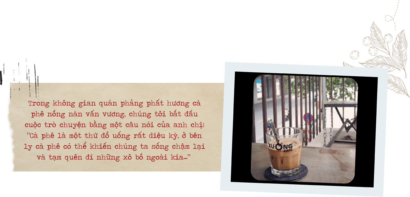 Câu slogan này cũng đã thôi thúc tôi kết nối với vợ chồng chị Thu - hai nhà sáng lập và điều hành của hệ thống Xưởng Cafe để tìm hiểu thêm về thương hiệu. Ngay từ giây phút gặp mặt đầu tiên, anh chị đón tôi bằng những nụ cười thân thiện và một cốc cà phê nóng ấm - thức uống đã làm nên tên tuổi cho Xưởng Cafe bấy lâu.