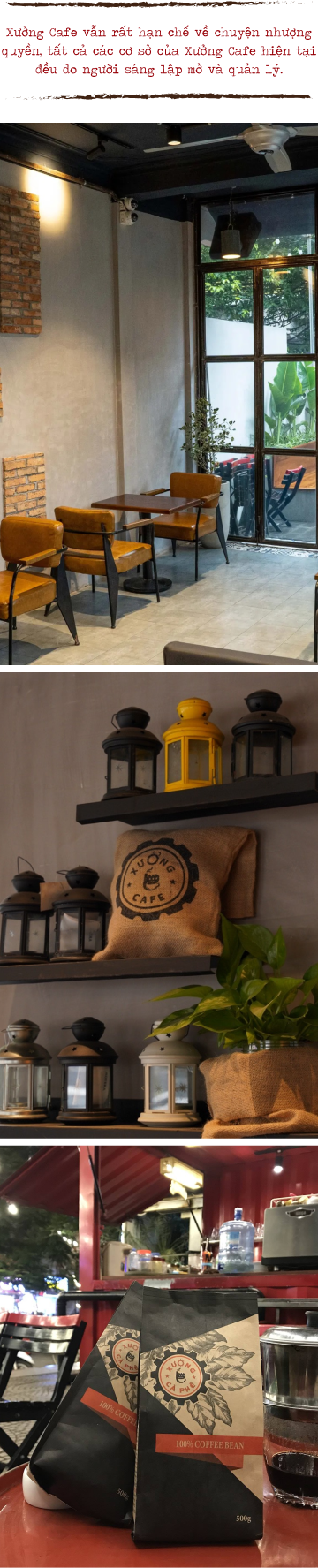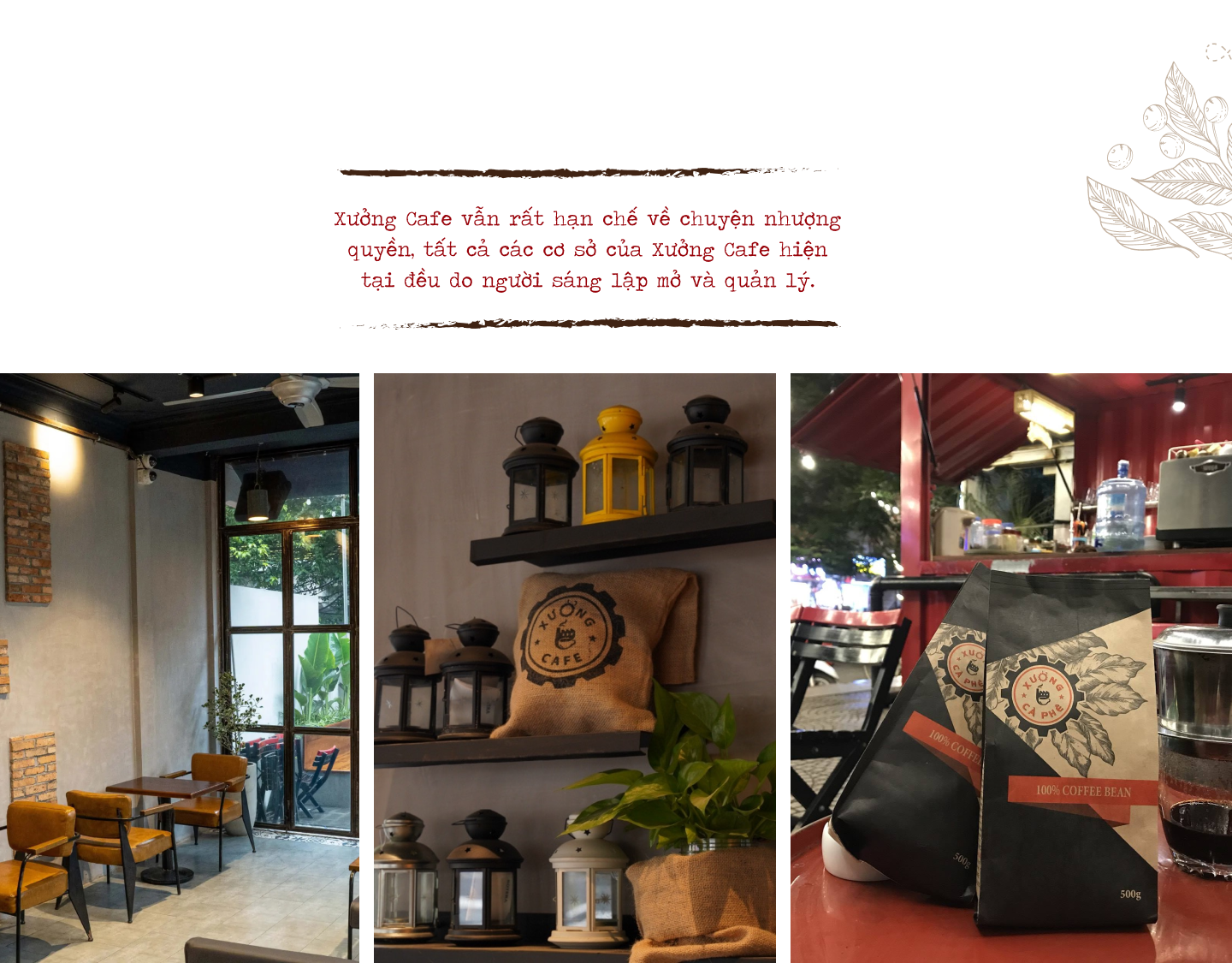 Hơn nữa, ở Việt Nam hiện tại chưa có quy định chặt chẽ cụ thể về việc nhượng quyền thương hiệu, nên cá nhân anh chị đánh giá việc này vẫn tiềm ẩn độ rủi ro rất lớn nếu chủ thương hiệu không sát sao và không có hướng xử lý kịp thời với những cơ sở nhượng quyền sai phạm. Vậy nên cho đến bây giờ Xưởng Cafe cũng vẫn rất hạn chế về chuyện nhượng quyền, tất cả các cơ sở của Xưởng Cafe đều do tự tay anh chị mở và quản lý.